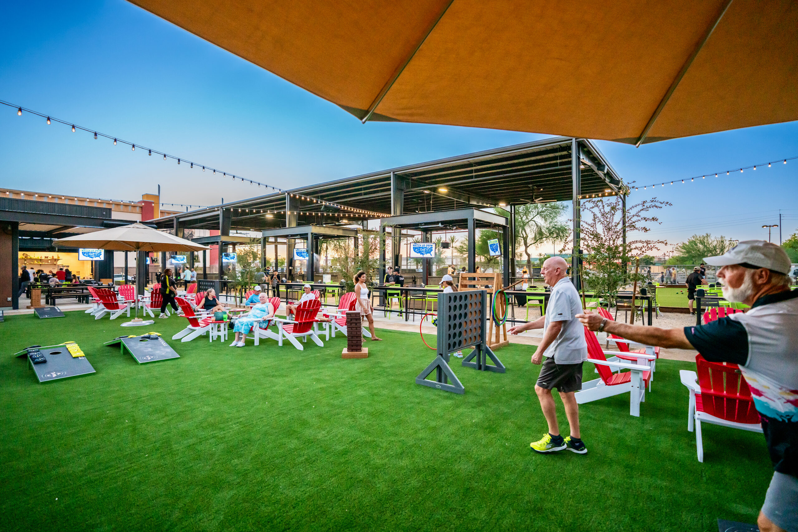 Unlimited play of cornhole, ping pong, bocce ball, and giant Jenga. They have a bar and food trucks, making it great for groups who want to be active but stay indoors.